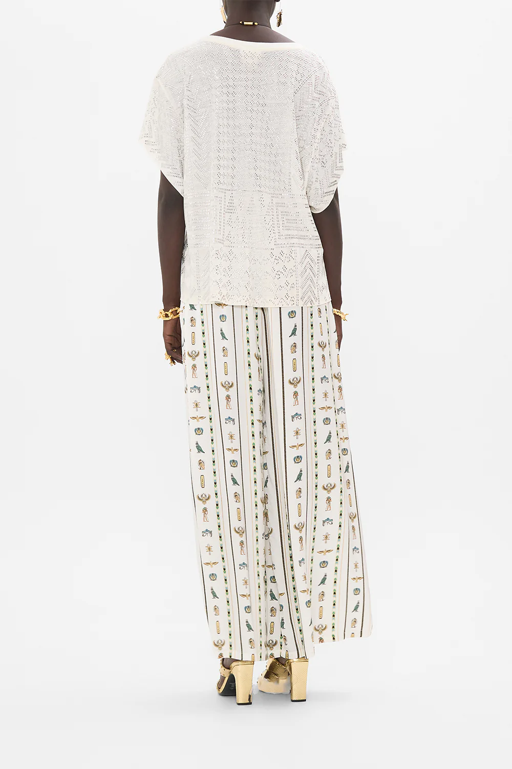 The Valley Of The Queens T-shirt with Dropped Armhole emulates a world of sacred symbols etched amongst a canopy of luscious fronds, regal wings and ancient deities. This luxury CAMILLA t shirt features statement details upon the relaxed fit body. Paired with short sleeves that flow from the dropped shoulder seam this tee flaunts a chic sculpturally boxy silhouette.
