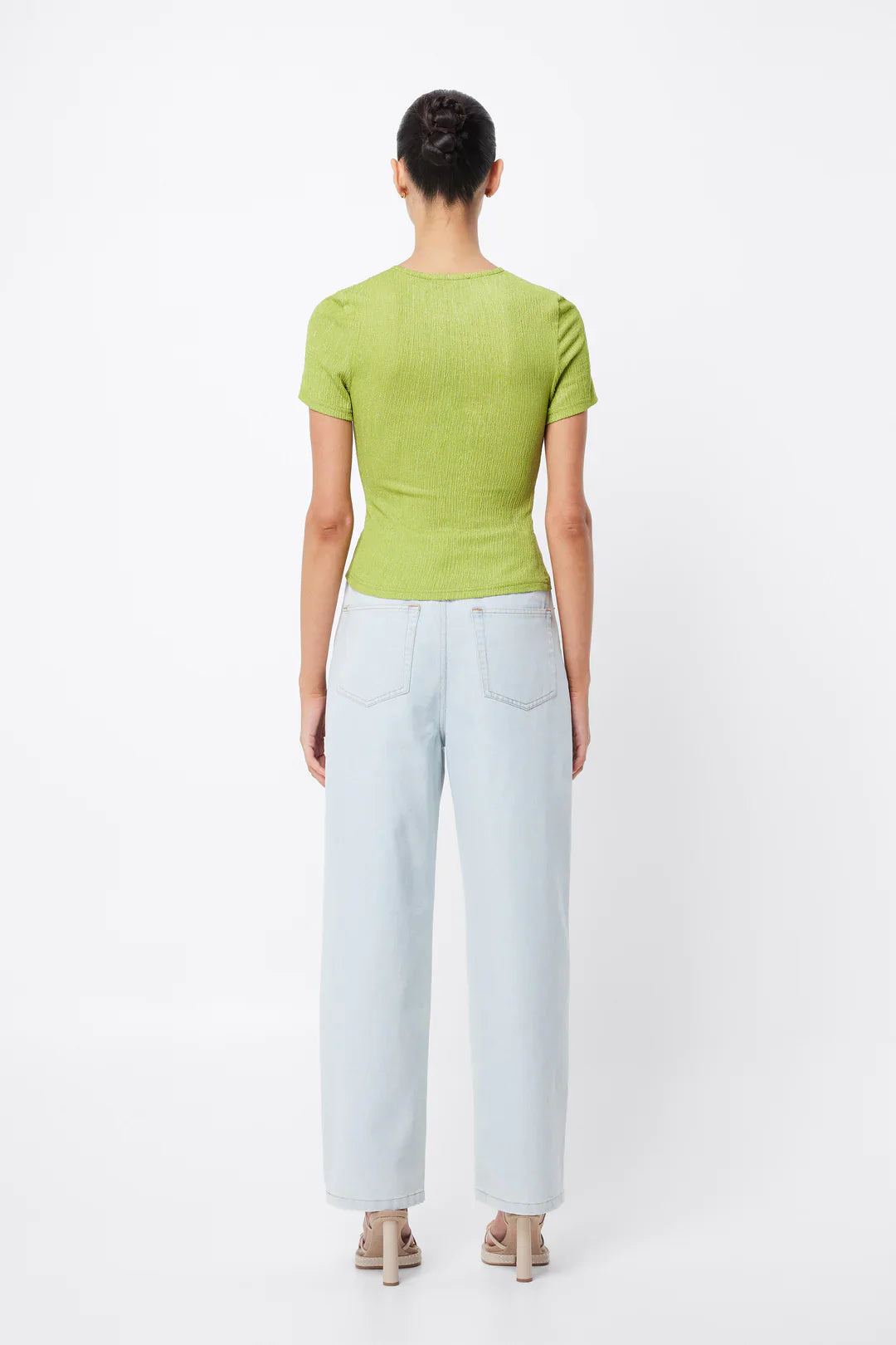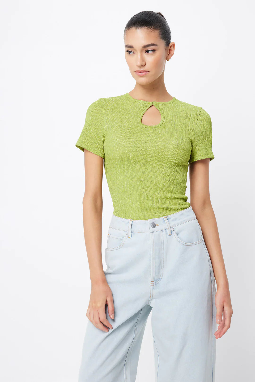 The Cascade Top in Green is designed to dress up and down. Made from a green textured fabrication the top features a short sleeve and key-hole design. Pair with your favourite jean for a casual ensemble.