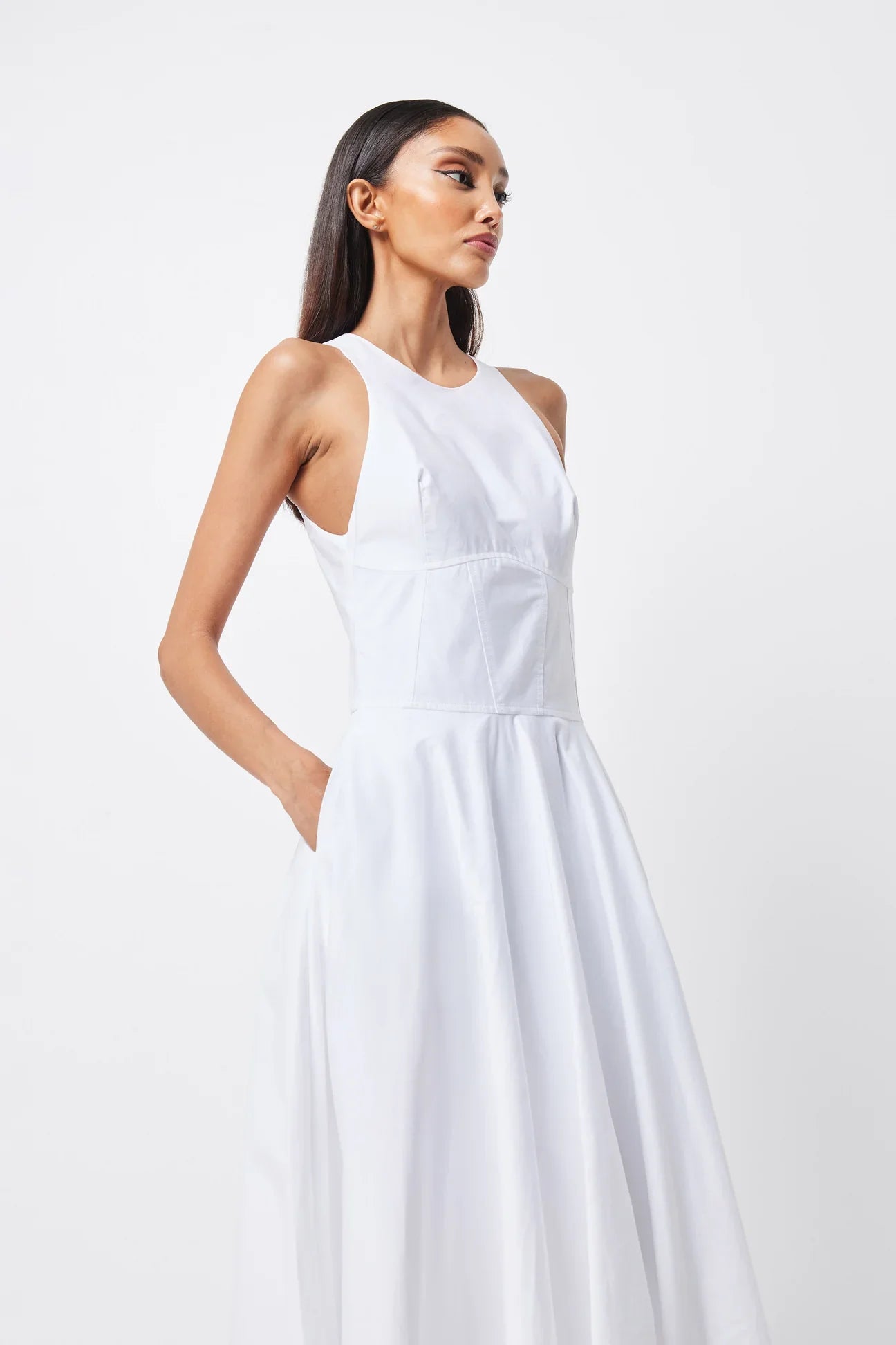 The Homage Maxi Dress is crafted from crisp cotton and is a feminine take on the classic shirt dress. Fitted through the torso with a flared A-line skirt, the stitch detail at the waist flatters every shape. Keep accessories pared back to stay in line with the modern, understated aesthetic.