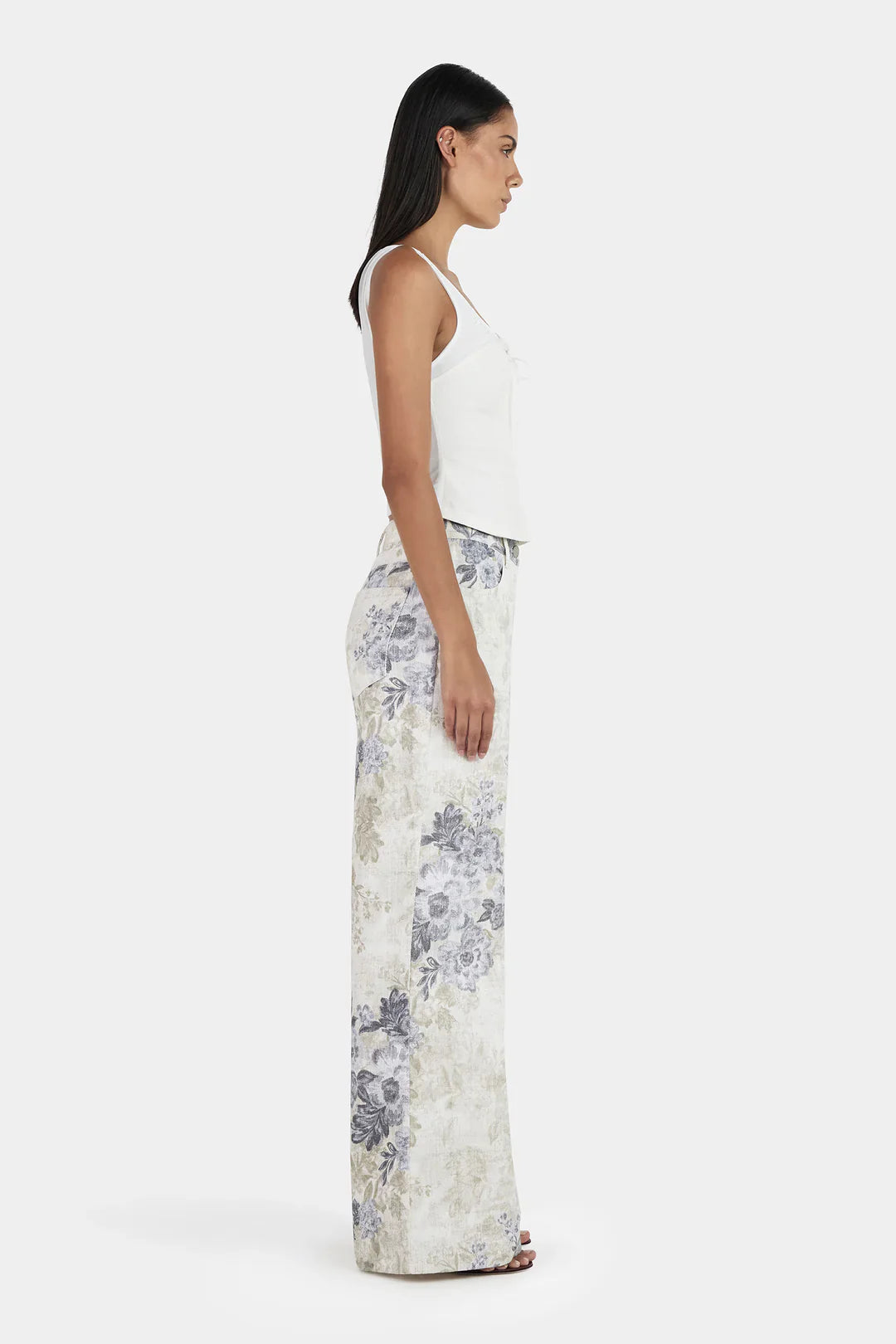 The Trent Hi-Waist Jean feature a straight-leg silhouette with a relaxed, slouchy fit around the ankle. Crafted from non-stretch denim detailed with contrast topstitching, stud embellishments, and classic denim tack buttons.