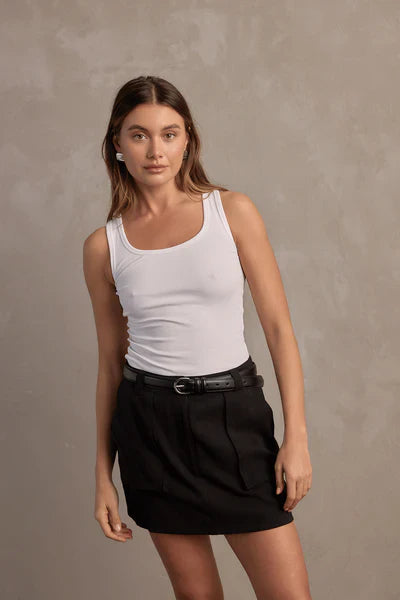 The Monica Mini Skirt is your must-have piece for every season. Made with soft woven fabric and lined for all-day comfort, this skirt is perfect for any occasion. Dress it up with a blazer or pair it with your favourite top for a chic and versatile look. Available in two stunning colours, Black and Olive.