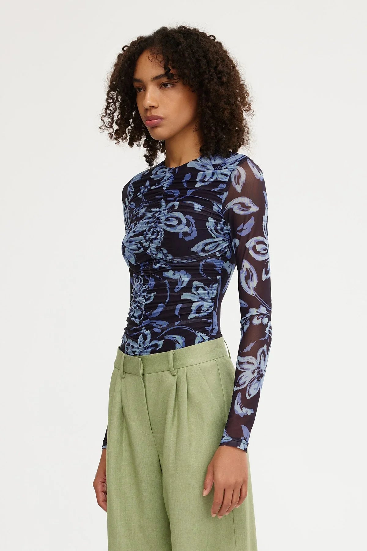 The Joan Long Sleeve Top in Dark Hibiscus is a fitted silhouette, crafted from a sheer look mesh fabrication. Complimented with lining through the bodice, high neckline and ruching through the centre front bodice.
